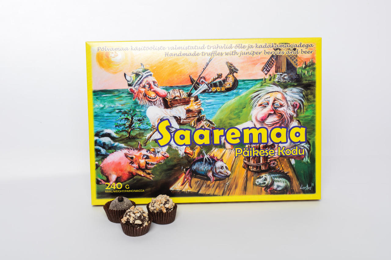 Õlletrühvid; kakaomass, suhkur, kakaovõi, Pihtla õlu "Kolm Venda", viski, soolatud maapähklid, Liviko "Lauaviin", emulgaator e322-sojaletsitiin, lõhna ja maitseaine-vanilliin.