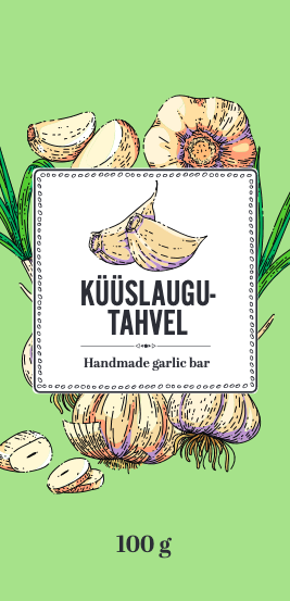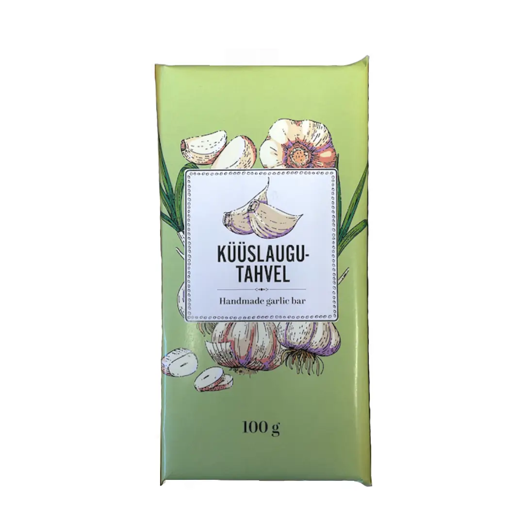 Koostisosad; suhkur, hüdrogeenitud taimne rasv, kakaomass, kakaopulber, küüslaugupulber 3%, emulgaator E322-sojaletsitiin, lõhna ja maitseaine - vanilliin.