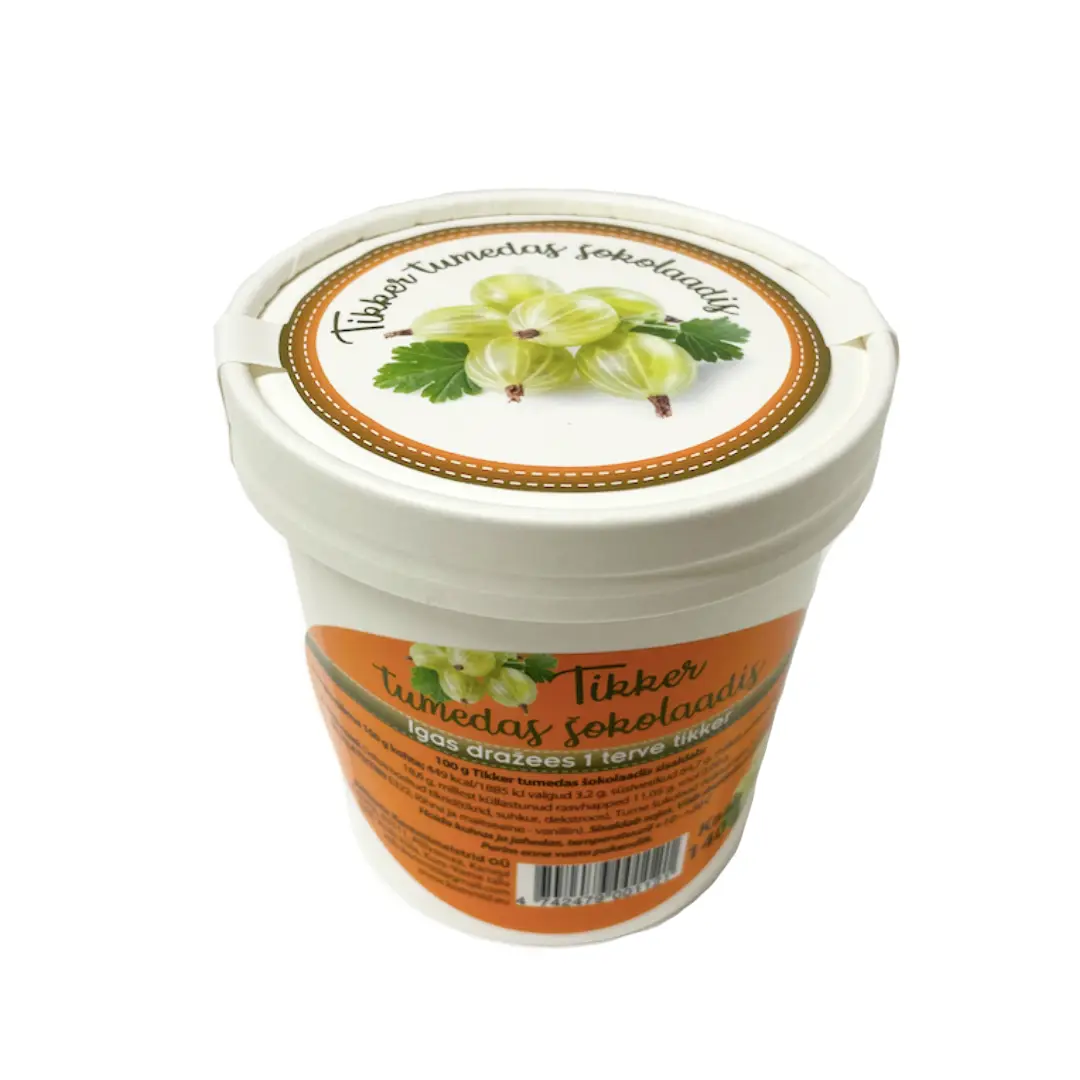 Dekstroositud tikrid(tikrid, suhkur, dekstroos), Tume šokolaad (kakaomass, suhkur, kakaovõi, sojaletsitiin E322, lõhna ja maitseaine - vaniliin).