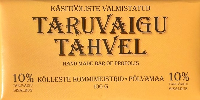 Ingredients; sugar, cocoa mass, cocoa butter, propolis 10%, emulsifier E322 - soy lecithin, flavouring - vanillin.
