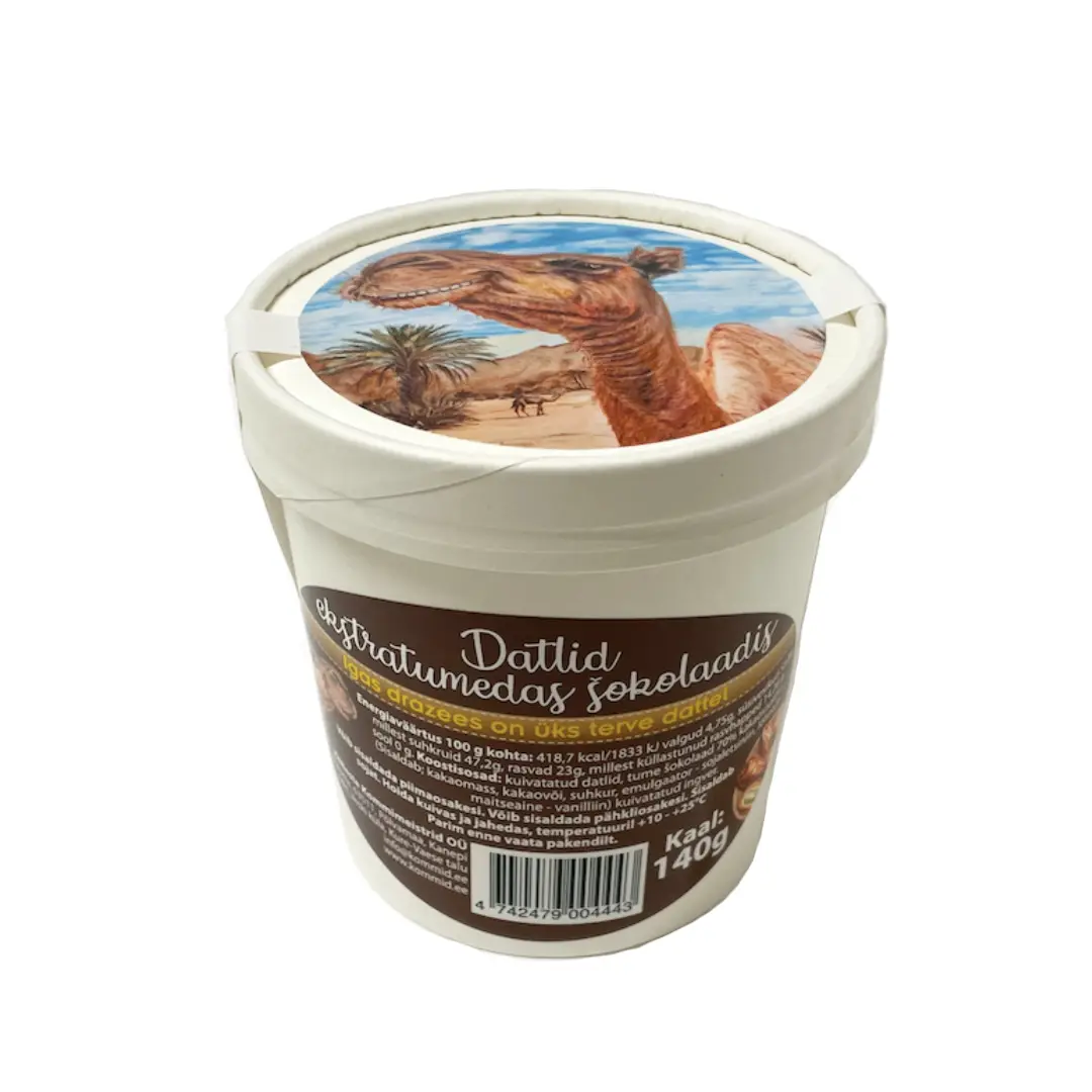 Kuivatatud datlid, mis on kaetud eriti hõrgu tumeda 70% kakaosisaldusega šokolaadiga, millesse on maitsenüansiks lisatud natuke ingverit.